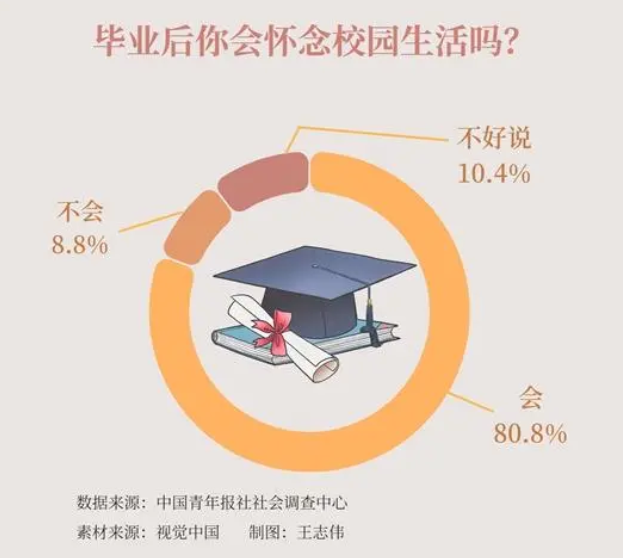調查顯示,80.8%的受訪畢業生表示畢業后會懷念校園生活。