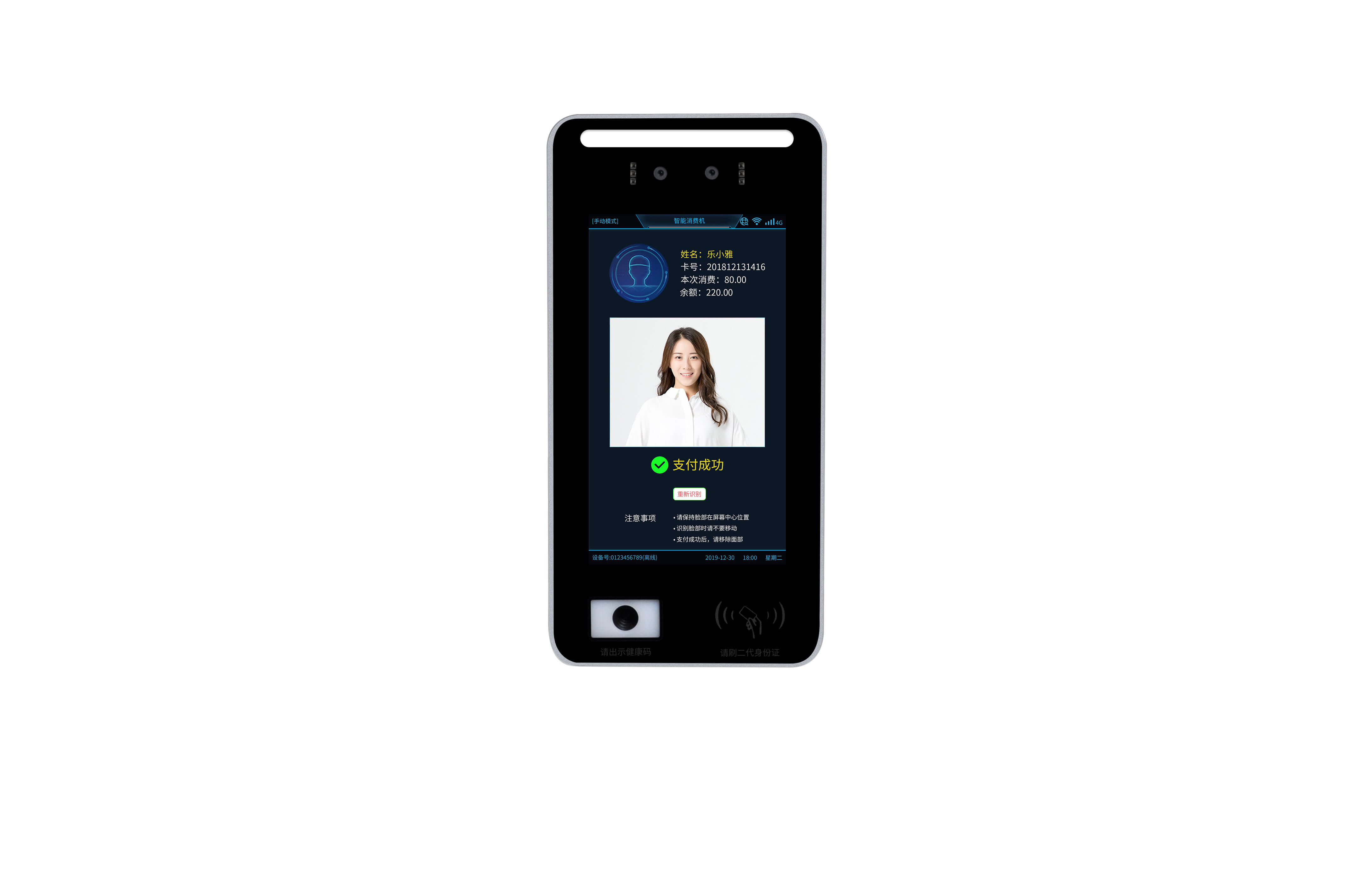 1. 圖像采集: 刷臉消費(fèi)機(jī)配備高清攝像頭,能夠在多種光線條件下捕捉用戶的面部圖像。