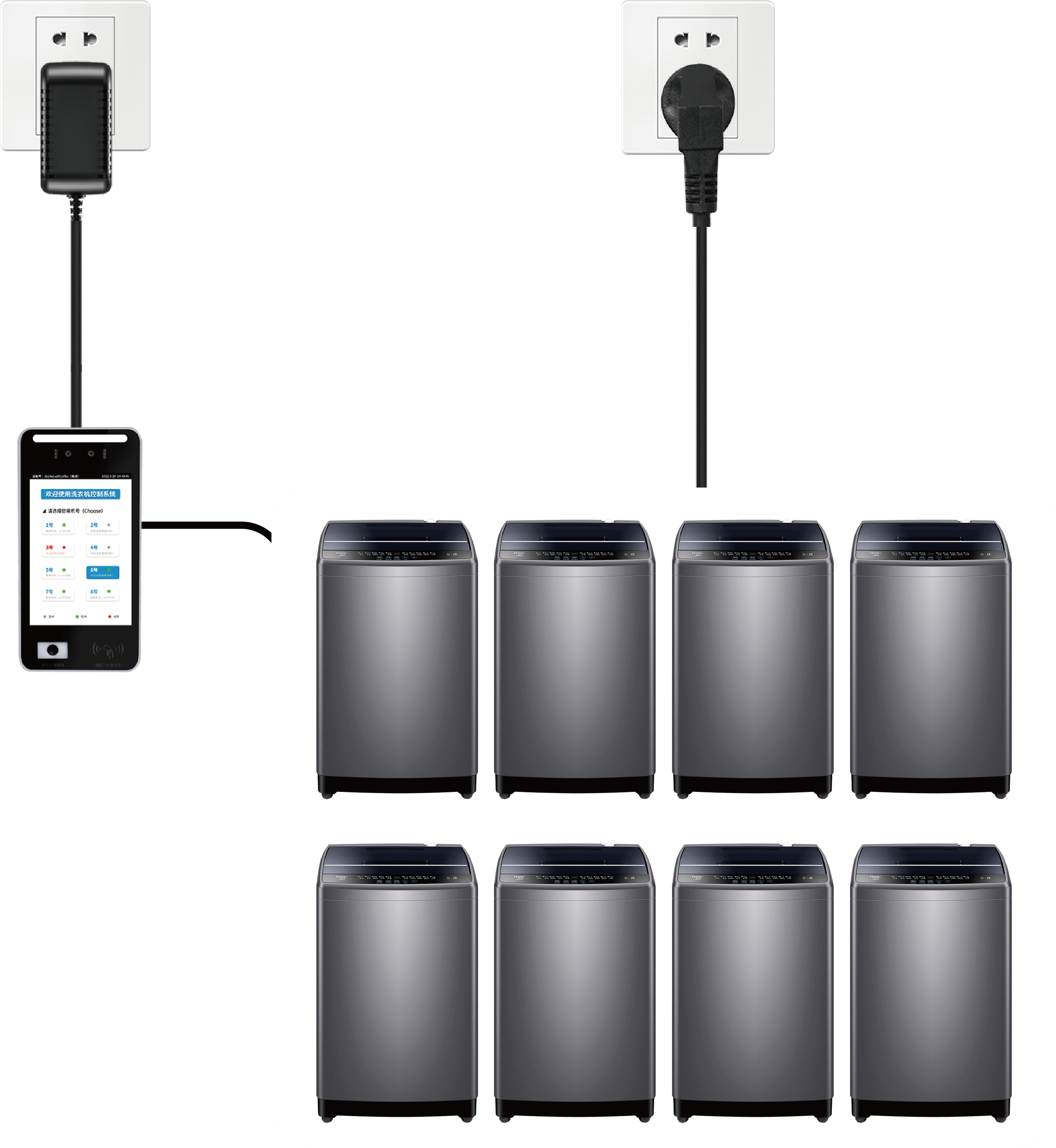 此外,還有外接式洗衣機(jī)控制器,包括能夠安裝于洗衣機(jī)外部固定物上的固定座和安裝于固定座上的控制盒。控制盒設(shè)置有與洗衣機(jī)電性連接的控制模塊、用于讀寫智能卡數(shù)據(jù)的刷卡模塊、用于實(shí)現(xiàn)控制模塊和智能終端之間信息交互的無線通訊模塊、用于顯示操作信息的顯示模塊以及用于輸出指定電壓的電源模塊。控制盒通過固定座固定在固定物上,與洗衣機(jī)為分體式結(jié)構(gòu),減少洗衣機(jī)工作時(shí)震動(dòng)對(duì)控制盒內(nèi)部線路板的影響。