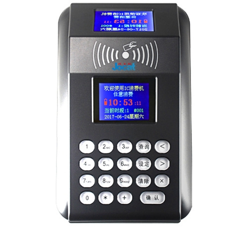 6、消費機有兩個顯示面,一面顯示處面向就餐者,帶操作鍵盤及顯示處面向收銀員。